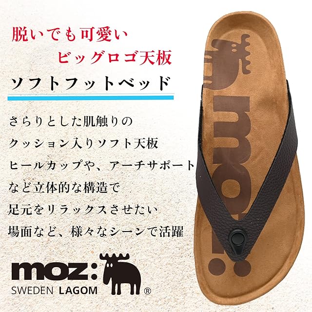 スウェーデン生まれの人気ブランドmozのメンズフットベッドサンダル<br> 脱いでもかわいいビッグロゴ天板でさりげないけどこだわりのコーディネイト<br> 土踏まずにややアーチのあるさらさらした柔らかい天板で、デイリーユースからリカバリーサンダルとしても活躍<br> トングタイプでさっと脱ぎ履き可能で、様々なシーンで使い勝手抜群