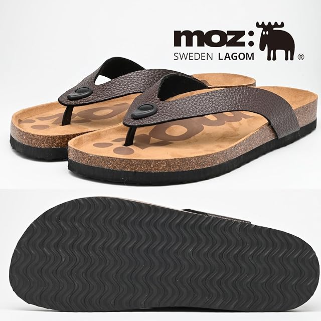 [モズ] フットベッドサンダル トングサンダル メンズ アーチサポート さらさら やわらか天板 エルク ビッグロゴ 5819 (ダークブラウン, S)
