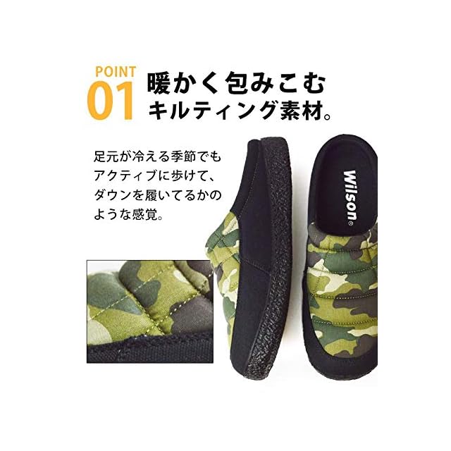 [ウイルソン] 防寒 メンズ ダウンシューズ キルティング ウィンターブーツ サボサンダル ウィンターブーツ 靴 メンズシューズ スリッパ スリッポン 保温 防滑 軽量 エコ配送 2204 Camo 3L(27.5-28cm相当)