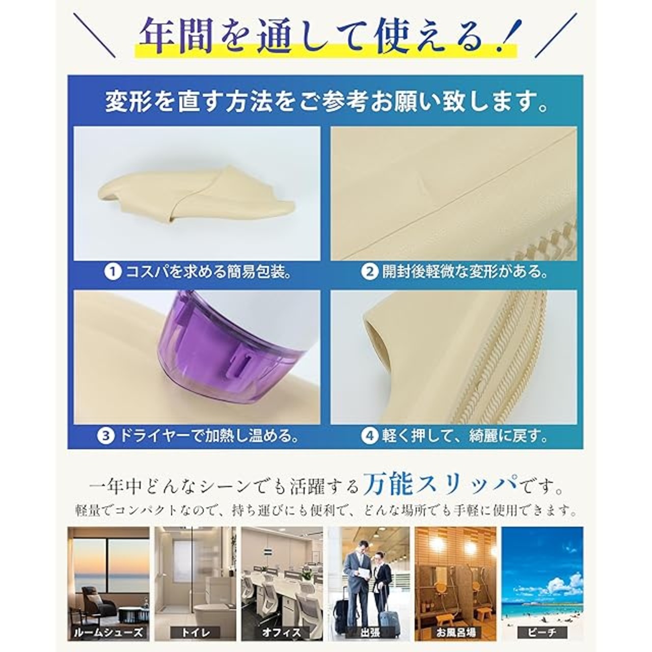 【年間を通して使える!室内&外履き兼用スリッパ】 AOYのすりっぱは衝撃吸収設計と防滑加工を施し、長時間履いても快適な履き心地を提供します。また、簡易包装のため、開封直後に軽微な変形や圧痕が見られる場合がありますが、ドライヤーの温風で軽く加熱し(約20〜30秒)、手で優しく押しながら形を整えることで、元のふかふかの状態に戻ります✨。数時間放置すればより自然な形に回復するので、安心してお使いいただけます!AOYのすりっぱはルームシューズ、トイレ、ベランダ、オフィス、旅行、ビーチ、散歩など、一年中どんなシーンでも活躍する万能スリッパ です。また、AOYのすりっぱは7色展開しており、好みに合わせてお選びいただけます!男女兼用で、カップルや家族 みんなでお揃いで履けるデザインで、日常使いやギフトにも最適です。AOYのすりっぱは軽量でコンパクトなので、持ち運びにも便利で、どんな場所でも手軽に使用できます。