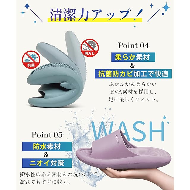 【清潔力アップ!防水・柔らか素材&抗菌防カビ加工で快適&ニオイ対策】 AOYのサンダル メンズは撥水性のある素材&水洗いOKで、水や汚れが染み込みにくく、お手入れ簡単で、濡れてもすぐに乾くので、カビや雑菌の繁殖を防ぎ、いつでも清潔に保てます!さらに、AOYのサンダル メンズはふかふか&柔らかいEVA素材を採用し、足に優しくフィット。歩行時の衝撃をしっかり吸収し、長時間履いても疲れにくい快適な履き心地を実現します。また、抗菌・防カビ加工&防臭効果のある素材を使用し、汗をかいてもニオイがこもりにくく、素足でも快適!通気性も抜群なので、蒸れにくく爽やかに履けます✨。AOYのサンダル メンズはジムやプール、海などの水辺はもちろん、シャワー後のバスサンダルとしても最適!室内・屋外問わず使える防水・抗菌防臭・洗える・柔らかい清潔&快適なサンダル メンズです!