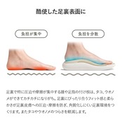 足裏にぴったり合うフィット感と柔らかさが足裏皮膚への圧迫・摩擦を防ぎ、 角質化しにくい足裏環境をつくります。