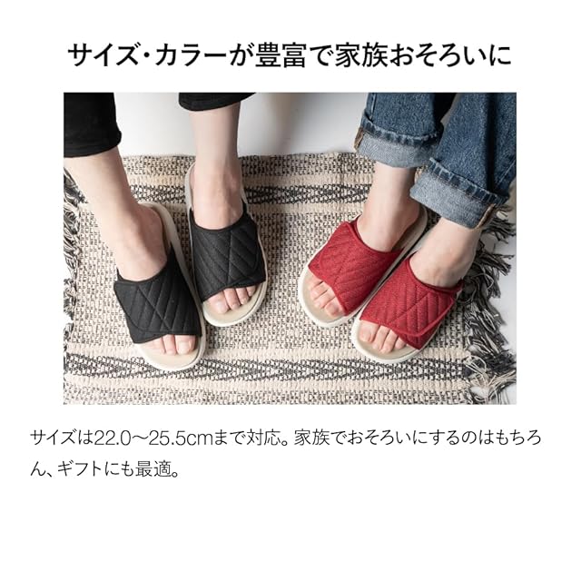 商品の説明酷使した足を休息するリカバリークッションの室内履き 酷使した土踏まずや足指の付け根に-土踏まずと足指付け根は、ハードワークをすると軽い炎症を起こす場合があり、これが慣習化すると足のトラブルに発展しますリカバリークッションは、足裏の凹凸カーブに対して荷重が均一にかかることで、土踏まずや足指の付け根の負担を分散します酷使した足裏表面に-足裏で特に圧迫や摩擦が集中するかかとや足指の付け根は、タコ、ウオノメができてカチカチになりがち足裏にぴったり合うフィット感と柔らかさが足裏皮膚への圧迫・摩擦を防ぎ、角質化しにくい足裏環境を作りますまたタコやウオノメのつらさが軽減します酷使した関節に-クッションが十分でない状態で歩く場合、ヒールコンタクト(かかと着地)の衝撃は膝や腰にも伝わり関節への負担が増しますリカバリークッションは、この衝撃を効率よく吸収し、関節への負担を和らげます素材・材質アッパー/ポリエステル、インソール/ポリウレタン、ソール/EVA原産国中国カラー名:RD