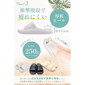 【注意事項】熱に弱い素材のためし室内や日が当たらないところでの着用をおすすめします。直射日光に当たると変形する可能性があります。親指が出っ張っている方はジャストサイズだとキツいと感じる場合があります。着用方法やサイズ感が気になる方は購入前にお気軽に問い合わせください。 【日本人向けにサイズ展開】日本人の一般的なサイズ感を徹底的に調査して開発しました。22.5~23.0、23.5~24.0、24.5~25.5、26.0~27.0の4サイズを揃えているので、普段履かれる靴と同じサイズ、足幅が狭い方は1サイズ小さいめの購入をおすすめします。※購入後万が一サイズが合わない場合はサイズ交換が可能ですのでご安心ください。 【弾力性に優れた素材】スリッパの素材は音や衝撃を吸収するジョイントマットにも使われる弾力性に優れた100%EVAを使用しています。着用し続けてもへたりにくいため長期間マイルームシューズとして愛用することができます。 【履き心地の良さ】土踏まずの形に合わせてかかと部分に膨らみがあるので足にフィットします。スリッパを室内で脱いだり履いたりしやすい形状です。 【疲れや痛みを感じにくい】高反発素材で衝撃を吸収するので痛みや疲れを感じにくいです。ソールの高さは一番高い部分が3.5cmあるのでキッチンで料理をする時、掃除をする時など長時間立っていても疲れにくいのが特徴です。 【箱タイプから持ち運び便利な巾着袋にリニューアル】2024年10月下旬発送分より、持ち運びに便利なオリジナル巾着袋にスリッパが入った状態でお届けいたします。授業参観やオフィスでの持ち運びにも便利です。