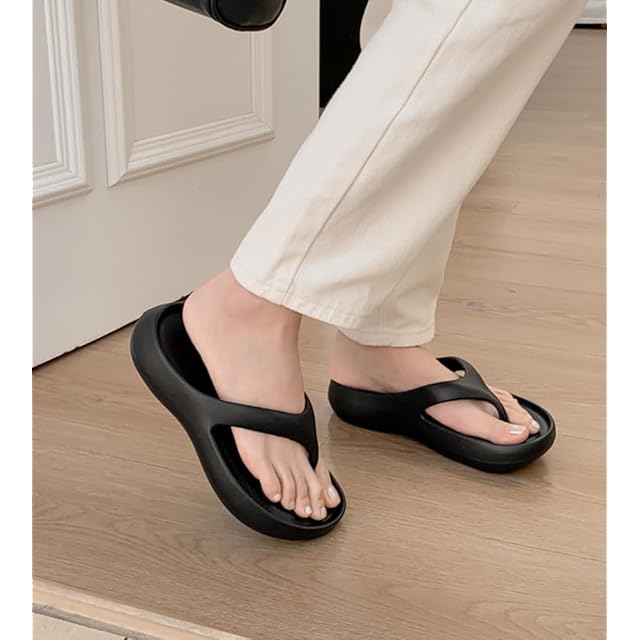 [Muzly] トングサンダル ビーチサンダル サンダル レディース リカバリーサンダル 厚底 歩きやすい 疲れない 軽量 美脚 (ブラック, 23.5 cm)