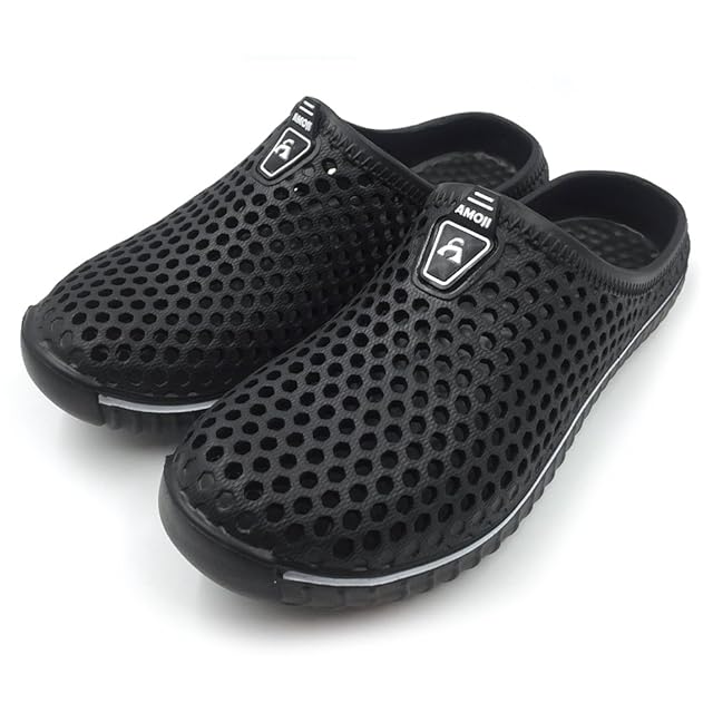 [アモジ]サンダル メンズ スリッパ 室内 レディース ルームシューズ めんず クロッグサンダル れでぃーす サボサンダル ビジネスサンダル オフィスサンダル ビーチサンダル ベランダサンダル 室内履き さんだる すりっぱ 夏 夏用 通気 部屋 室内サンダル おしゃれ クッション 大きいサイズ 幅広 内履き 外履き 防水 事務所 屋外 玄関 ゴム つっかけ スリッポン AM1702 黒 ブラック 30.0cm