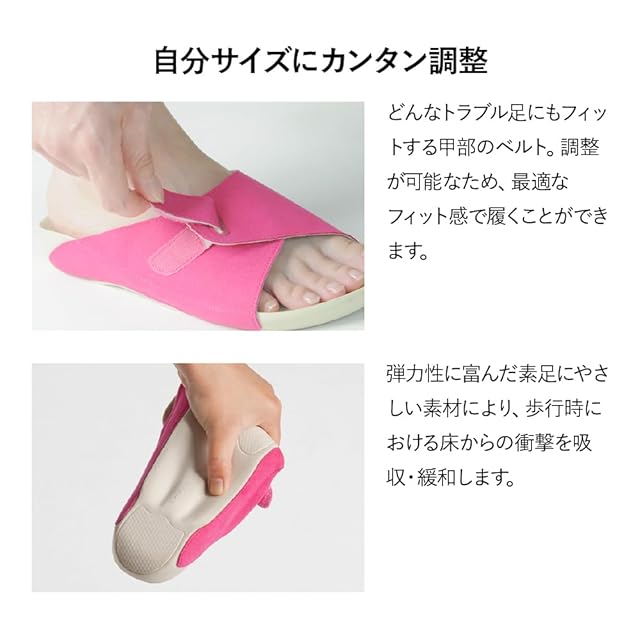 面ファスナーでお好みのサイズに調整できるから、幅広・甲高でも安心。