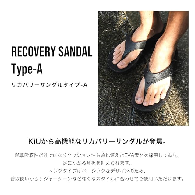 KiU キウ サンダル ビーサン スリッパ 靴 ビーチ 夏 シンプル ベーシック リカバリーサンダル Type-A ブラック ML K332ML-900