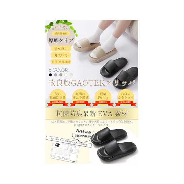 【改良版GAOTEKスリッパが登場!】超軽量設計のルームシューズで、これまでにない素晴らしい履き心地を提供します。機能性①:高品質EVA素材-軽量で耐久性・抗菌防臭性に優れた一体型高密度EVA素材採用します!機能性②:4cmの超厚底設計により、地面の凹凸を感じにくく、ふかふかの履き心地を楽しめます!機能性③:超軽量設計-わずか約130gの軽量デザインで、スリッパの重量を最小限に抑え、足への負担を軽減します!機能性④:高反発構造-深めに設計されたソールのくぼみが、歩くたびに優れた弾力性を発揮します!機能性⑤:滑り止め設計-独自の滑り止めパターンと素材を組み合わせることで、優れたグリップ力を発揮します!さらに静音で歩行快適という驚きの履き心地を実現しました。既存のスリッパのイメージを覆すこの革新的なスリッパは、未経験の素晴らしい快適さをお約束します。