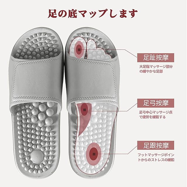 【健康効果】スリッパの突起がぐりぐりとツボを刺激します。刺激のバランスが絶妙でソフトな履き心地のサンダルです。オフィスワークや家事をしながら快適に足つぼを刺激できます。