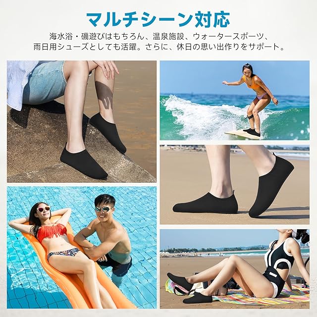 【マルチシーン対応】水中から日常まで→ 海水浴・磯遊びはもちろん、温泉施設、ウォータースポーツ、雨日用シューズとしても活躍。さらに、休日の思い出作りをサポート。
