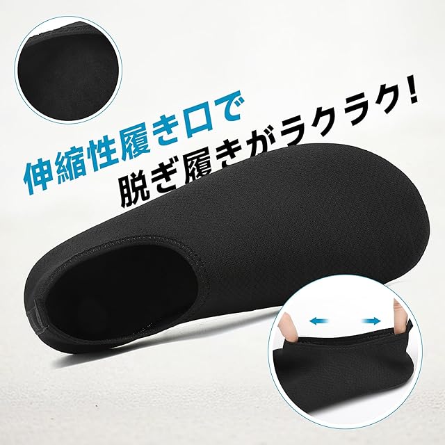 [gitzing] 【超軽量・速乾】マリンシューズ メンズ ウォーターシューズ レディース 男女兼用 脱着簡単 折り畳み可能 滑り止め底付き 海水浴 プール 釣り アクティビティに最適 ブラック 23.5 cm