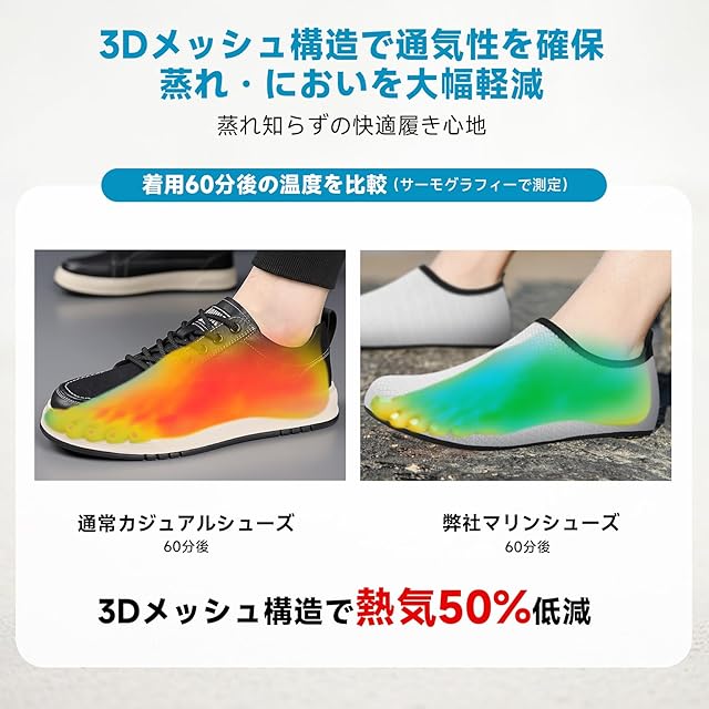 【全天候快適】メッシュ呼吸性×速乾機能→ 17Dメッシュ素材が通気性抜群。水切り性能UP設計でサンダル並みの速乾性を実現。蒸れ知らずの快適履き心地。