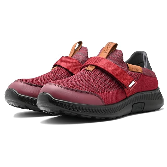 [モズ] スリッポン メンズ 2way 踵を踏める 高屈曲 低反発 ソフトクッションソール ニット マジックバンド (5220レッド, L)