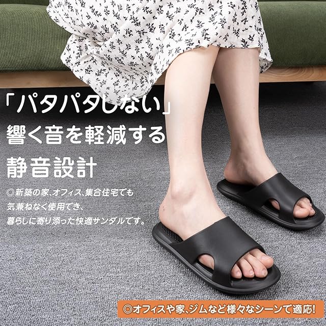 [Alvisto] 超軽量 スリッパ 室内 サンダル ルームシューズ 夏用 蒸れない 速乾 防滑 クッションソール シャワーサンダル メンズ レディース お風呂・リラックス用 静音 抗菌防臭 大きいサイズ ブラック 22.5-23.0cm