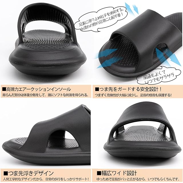 [Alvisto] 超軽量 スリッパ 室内 サンダル ルームシューズ 夏用 蒸れない 速乾 防滑 クッションソール シャワーサンダル メンズ レディース お風呂・リラックス用 静音 抗菌防臭 大きいサイズ ブラック 29.0-29.5cm