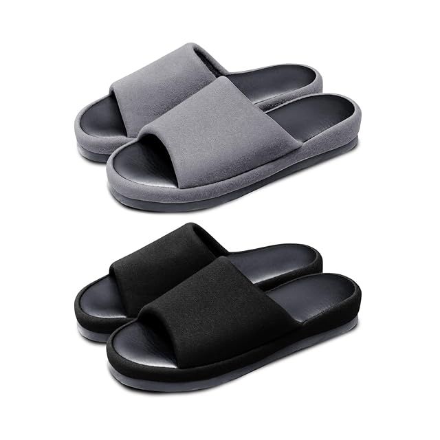 [IkucheL] スリッパ ルームシューズ メンズ 室内 抗菌加工 男女兼用 軽量 おしゃれ 衝撃吸収 レディース ブラックL+グレーL2足セット