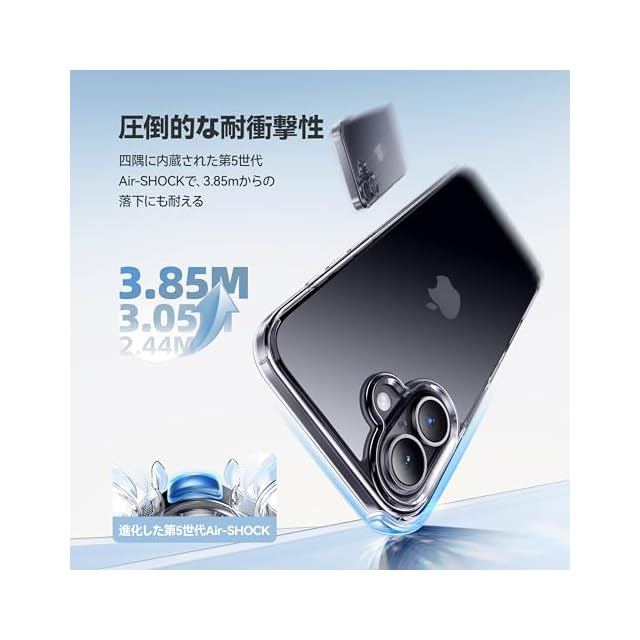 【もしもの時も安心・米軍MIL認証済み】四隅に内蔵された第5世代Air-SHOCKが、3.85mの高さからの36方向・5500回以上の落下テストを完全クリア。防弾シールドにも使用される高硬度ポリカーボネート素材と三重耐衝撃構造、U-Shockエアクッションで衝撃を98%吸収し、衝撃保護性能が30%向上しました。米軍MIL規格認証番号:GZMR220702237705|認証機関:CSTC Standards Testing Center|認証時間:Jul 20, 2024