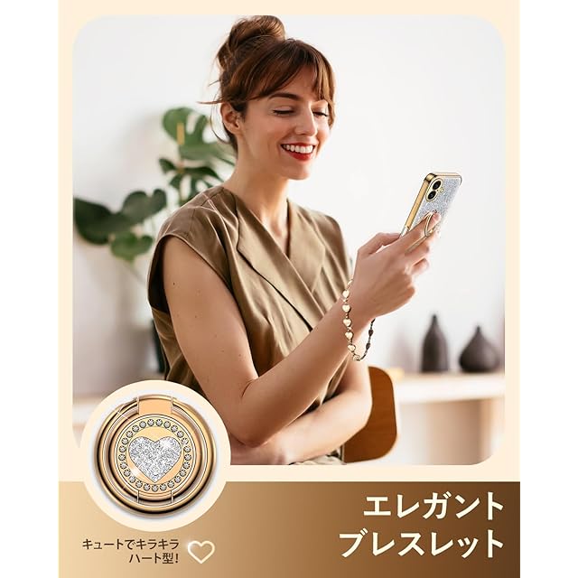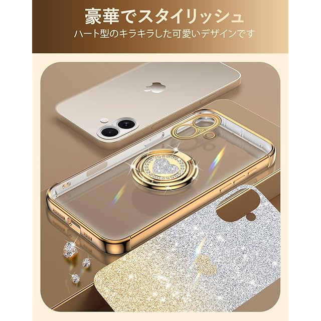 【キュートなデザイン】金メッキのエッジ、ハート型の刻印入りリングキックスタンド、ミニハートのリストストラップチェーン付きのこのケースはお使いの携帯電話に優雅さと魅力を加えます。贅沢さとスタイルさ好みを完璧に表現します。記念日、母の日、誕生日、クリスマス、バレンタインデーなどのに、奥様、お母様、娘様、ガールフレンド、ご友人への理想的な贈り物になります。