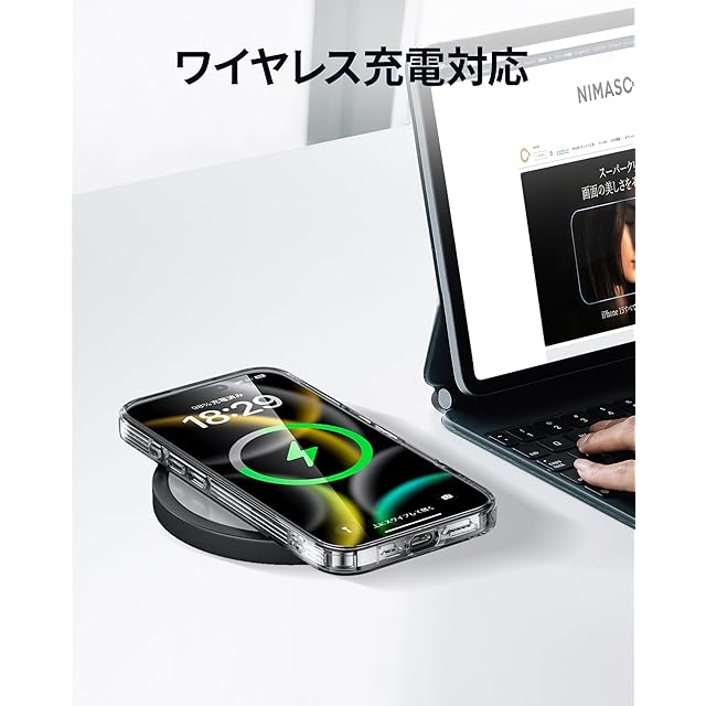 【ワイヤレス充電対応】薄型で軽量の仕様。ケースを装着したままワイヤレス充電ができる。精巧なカットアウトによって、ボタン操作も快適です。(本製品はMagSafe機能が付いていないので、MagSafe充電器を使う場合、スマホケースに磁力がないため、ピタッとくっつかない事がございますので、ご注意ください。)