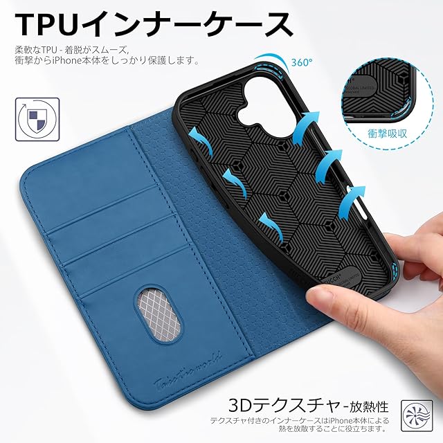 TUCCH iphone16 対応 ケース 手帳型 アイフォーン16カバー カード収納 キックスタンド機能 [RFIDブロッキング] PU合皮 TPU素材 耐衝撃 全面保護 あいほん16携帯カバー アイホン16スマホケース 2024年発売 6.1インチ アイフォ16 対応 レイクブルー