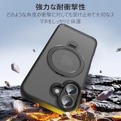【革新的なMagSafe対応・極上充電体験】端末をしっかりと固定し、充電器との距離を最小限に抑えることで、エネルギーの無駄を省き、高速かつ効率的なワイヤレス充電を実現します。また、充電時の熱を効果的に放熱し、大切なスマートフォンのバッテリーの寿命を長く保ちます。【驚くほど進化した360度回転スタンド技術】スタンドを使ってスマホを縦にしても横にしてもしっかりと支えることができます。自然な姿勢で、YouTube、映画、動画視聴やテレビ電話など楽しめます。【細部まで保護&指紋や油汚れはゼロに!】高精度のマット艶消し表面処理と防汚バイオニック技術を使用することで、指紋や油汚れなどの問題を徹底的に解決!夏場でも、ベタつきの心配は不要で、いつでもサラサラでキレイな状態でをご使用頂けます。本体の細部までしっかり保護しているので、とっても安心!ストラップホール付きで、紛失や落下も防ぐことができます。