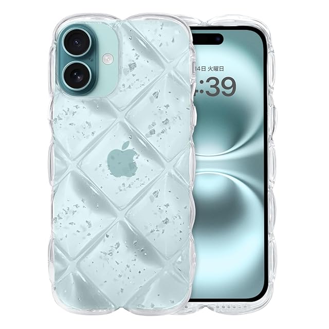 ♥【iPhone 16 対応】このiPhone16クリアケースは透明TPUとウェーブエッジ、背面ダイヤモンドひし形ふわふわとアルミ箔シルバーキラキラ装飾で作られており、光の下でダイヤモンドのように輝き、高級感を醸し出します。