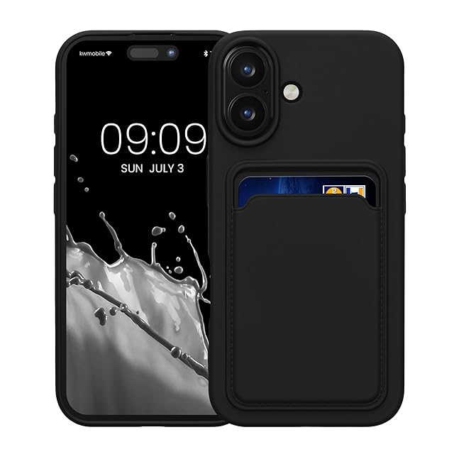 kwmobile スマホケース Apple iPhone 16対応 ケース -カードホルダー付き ソフト TPU シリコン 黒色