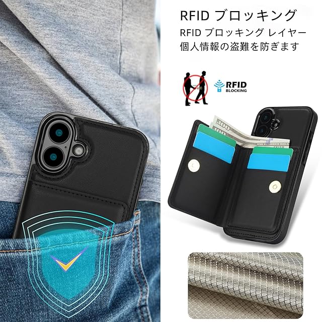 RFIDブロック機能:お客様の財産の安全を守ることは私たちの最優先事項です。そのため、iphone16 ケース カード収納は内部に耐磁性干渉材料を使用するだけでなく、「RFIDシールド機能」のセキュリティ対策も備えており、重要な個人情報を保護します