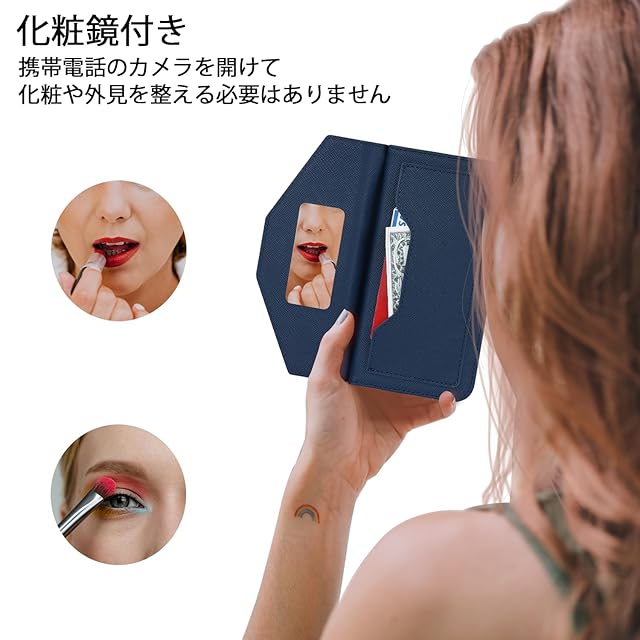 【高級皮革】高品質のPUと柔軟なTPUシェルを組み合わせて、スタイリッシュな外観、快適で滑らかなライン、優れた放熱性と耐衝撃性、優れた耐傷性と防塵性能を備えています. 変形しにくく、取り外しも簡単なので、スマホ自体を傷つける心配もありません。※注意:化粧鏡の素材は柔らかい。