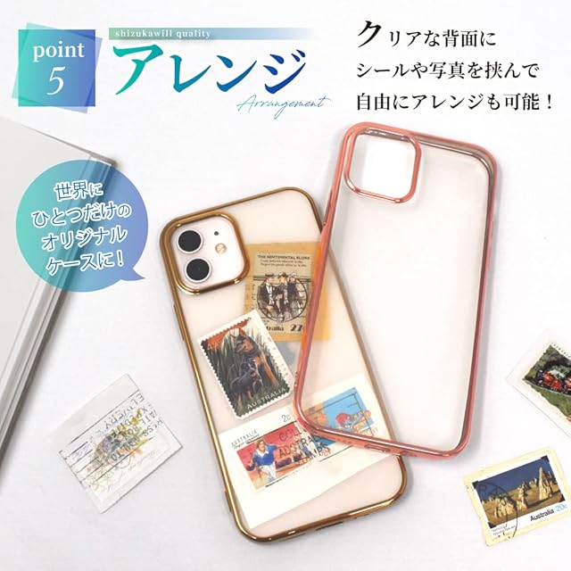 《 サイドメッキ 》<br> 透明クリアケースにサイドをメッキ加工する事でオシャレにアクセント。<br><br><br> ■商品内容<br><br> サイドメッキ加工 , クリアケース<br><br> ■商品仕様<br><br> :サイドメッキ加工<br> :高透明<br> :高耐衝撃<br> :衝撃吸収<br> :背面貼り付き防止加工<br><br> ■梱包パッケージ<br><br> shizukawill専用パッケージ<br> ※商品パッケージを随時変更中です<br> ※旧パッケージで発送する場合が<br> 御座いますが同じ商品となります。<br><br> ■素材について<br><br> TPU:熱可塑性(ねつかそせい)ポリウレタン<br> プラスチック素材の一種です<br> 加熱すると柔らかく、冷ますと硬くなる性質があります。<br><br> ■ケース特徴<br><br> ポリカーボネートより柔らかく、シリコンより硬い<br> 中間的な柔らかいケース<br> 衝撃に強いので、落下時の衝撃吸収をし<br> 端末本体を守ってくれます<br> ホコリが付きにくく、脱着しやすいです<br> ケース背面にマイクロドット加工を<br> 施しておりますので、滑り止めにも◎<br><br><br> 【注意事項】<br><br> ※製品の色味に関しては、お使いのデバイスの表示性能や設定により<br> 変化する可能性がありますのでご注意ください。<br><br> ※他社様で購入されたガラスフィルムをご使用<br> につきましては弊社オリジナルケースとの干渉に対し<br> 浮きや剥がれ等検証致しかねますので、非推奨とさせて頂きます。<br><br> 弊社の保護フィルムとは干渉しないように設計しておりますので、<br> ご安心してお買い求め下さい。<br><br> ※お客様の満足して頂きたく品質改善を日々しております。<br> それに伴い予告なしに開口部デザインが変更する場合がございます<br> ご了承くださいませ。随時商品ページにてお知らせ致します。<br>