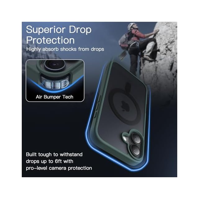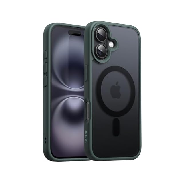 JETech iPhone 16 6.1インチ用 マグネット ケース MagSafeに対応 半透明のマット背面 薄型 耐衝撃 カバー (ダークグリーン)