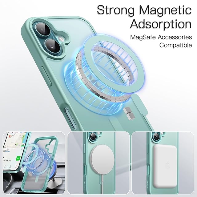 JETech iPhone 16 6.1インチ用 マグネット ケース MagSafeに対応 半透明のマット背面 薄型 耐衝撃 カバー (ティールブルー)