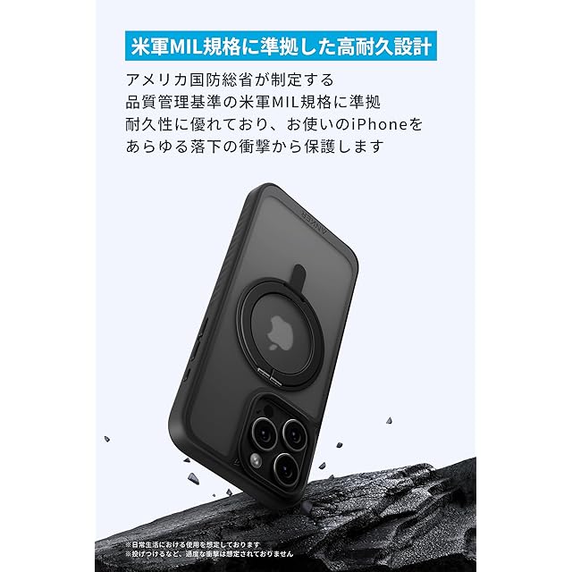 米軍MIL規格に準拠した高耐久設計:アメリカ国防総省が制定する品質管理基準の米軍MIL規格に準拠し、耐久性に優れており、お使いのiPhoneをあらゆる落下の衝撃から保護します。