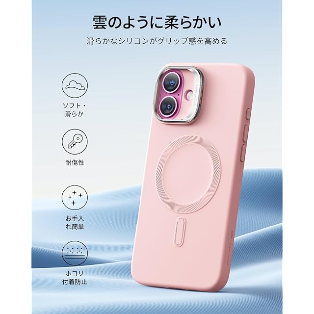 【デザイン受賞シリーズ!】ESR iPhone 16 ケース スタンド付きシリコンケース 米軍MIL規格の保護 隠れスタンド アイフォン16 ケース いphone16 ケース対応 iPhone 16用マグネットスマホケース Cloudシリーズ ピンク