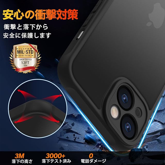 iPhone13 ケース マット感 半透明 耐衝撃 指紋防止 アイフォン13 ケース 米軍MIL規格 黄変防止 スマホケース iphone 13 6.1インチ 対応 PinLiSheng(ブラック, iPhone 13)