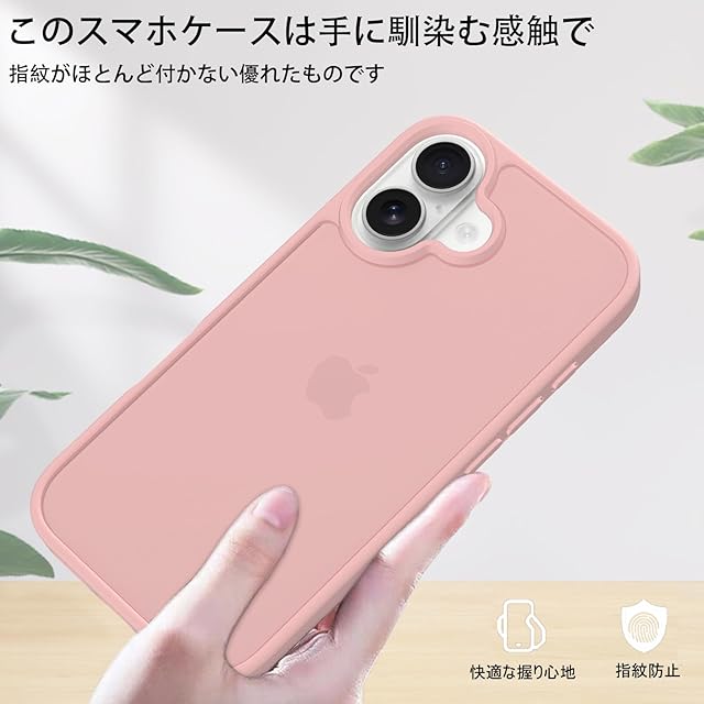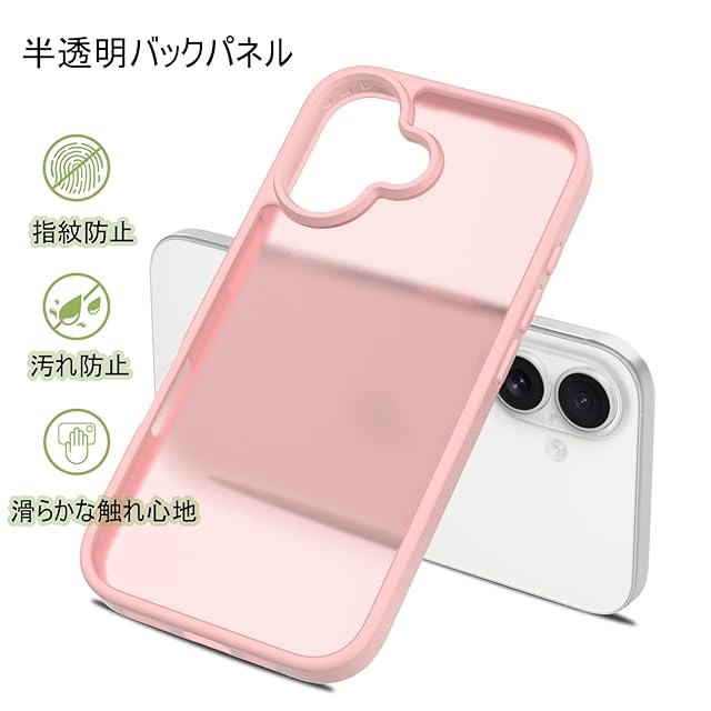 PinLiSheng iPhone16 ケース マット感 半透明 耐衝撃 滑り止め iPhone 16 ケース 指紋防止 米軍MIL規格 黄変防止 ワイヤレス充電対応 スマホケース iPhone 16 (ペールピンク, iPhone 16)
