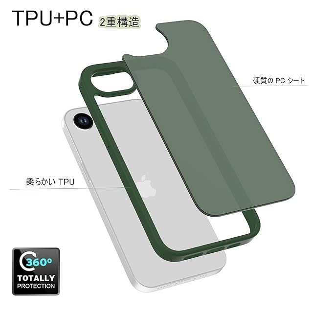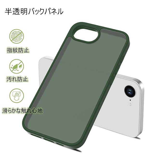 PinLiSheng iPhone 16e ケース マット感 半透明 耐衝撃 滑り止め SE4 ケース 指紋防止 米軍MIL規格 黄変防止 ワイヤレス充電対応 スマホケース(しんりょく, iPhone 16e)