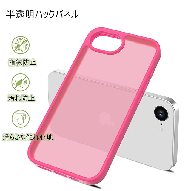 PinLiSheng iPhone 16e ケース マット感 半透明 耐衝撃 滑り止め SE4 ケース 指紋防止 米軍MIL規格 黄変防止 ワイヤレス充電対応 スマホケース(ばらいろ, iPhone 16e)