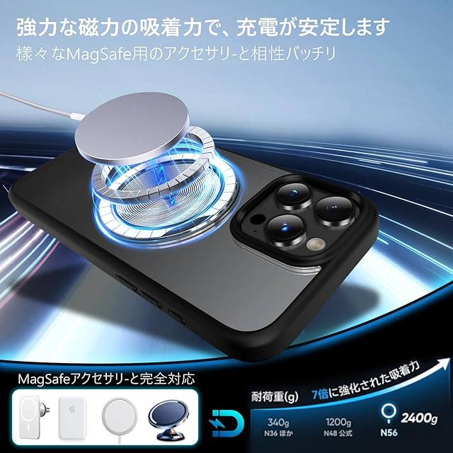 【強力な磁気リング、MagSafe対応】強力なマグネットリングにアップグレード後、強力な吸着力があり、よりしっかりとMagSafeに対応し、充電器に近づけると高速ワイヤレス充電を実現できます。これにより、充電方法が容易になります。 振ったり振動しても落ちないので、安心してお使いください。 いphone16promax 用 ケースはすべての Magsafe デバイスと互換性があります。 (ご購入時のご注意:QIワイヤレス充電には対応しておりませんのでご注意ください)(アイホン16pro max 用 ケース)