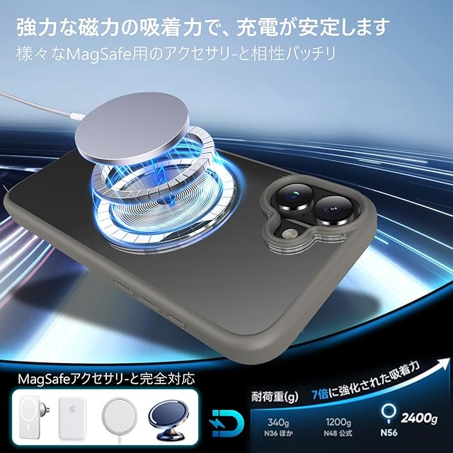 【強力な磁気リング、MagSafe対応】強力なマグネットリングにアップグレード後、強力な吸着力があり、よりしっかりとMagSafeに対応し、充電器に近づけると高速ワイヤレス充電を実現できます。これにより、充電方法が容易になります。 振ったり振動しても落ちないので、安心してお使いください。 いphone16plus用ケースはすべての Magsafe デバイスと互換性があります。 (ご購入時のご注意:QIワイヤレス充電には対応しておりませんのでご注意ください)(iphone 16 plus 用 ケース)