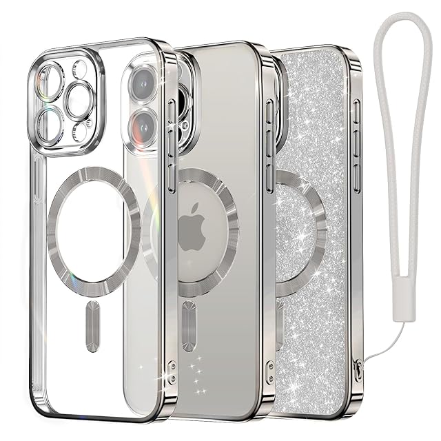 Meifigno iPhone 15 Pro ケース キラキラペーパー付き MagSafeに対応 黄ばみなし 耐衝撃 磁力強い ワイアレス充電 ストラップ 透明 可愛い クリア 6.1インチ シルバーグレー