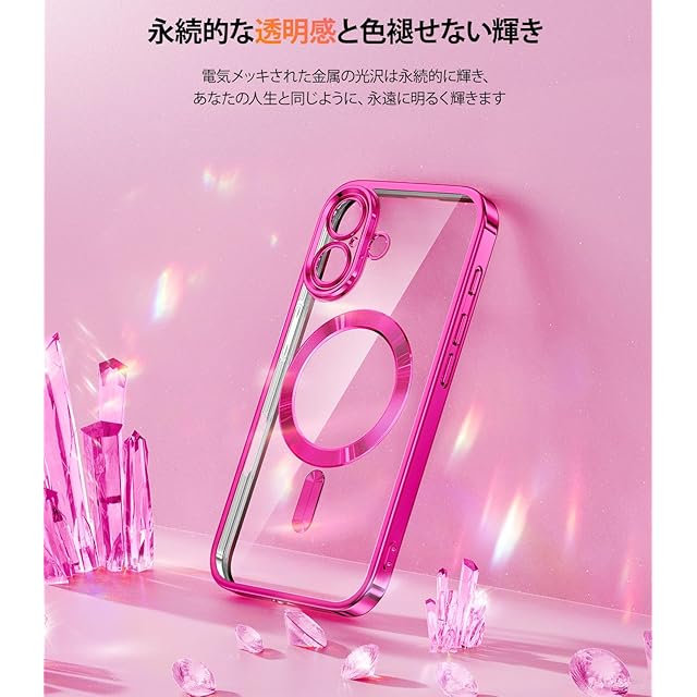メタリックな光沢デザイン: このケースは iPhone 16 Plus 専用に設計されています。透明な背面を維持しながら、エッジ、カメラ、磁気リングはメタリックな光沢で装飾されており、本当にユニークです。電気メッキプロセスにより、このケースは輝く色になり、色あせたり剥がれたりすることはありません。
