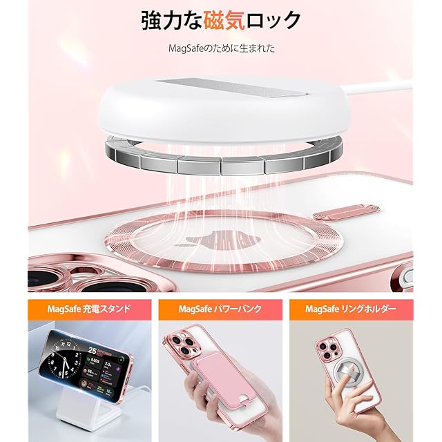 MagSafe 対応: 厚さ 1.0mm の N52 磁石を 38 個内蔵したこのケースは、通常のケースより 2 倍強力な磁力を発揮します。ケースを外すことなく、MagSafe 充電器と自動的に位置合わせし、本来の充電速度を体験できます。また、すべての MagSafe アクセサリと互換性があります。