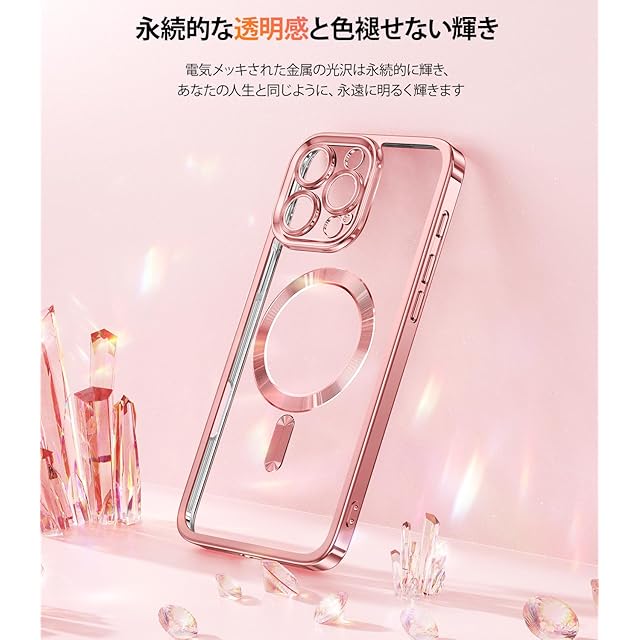 メタリックな光沢デザイン: このケースは iPhone 16 Pro 専用に設計されています。透明な背面を維持しながら、エッジ、カメラ、磁気リングはメタリックな光沢で装飾されており、本当にユニークです。電気メッキプロセスにより、このケースは輝く色になり、色あせたり剥がれたりすることはありません。