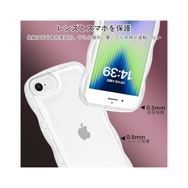 BENTOBEN iPhone SE 第3世代 用/iPhone SE2 / iPhone8 / iPhone7 ケース クリア TPU 韓国 可愛い ウェーブ ソフト 滑り止め 薄型 軽量 耐衝撃 おしゃれ スマホケース ストラップホール付き アイフォン SE3 SE2 8 7 ケース 4.7インチ クリア