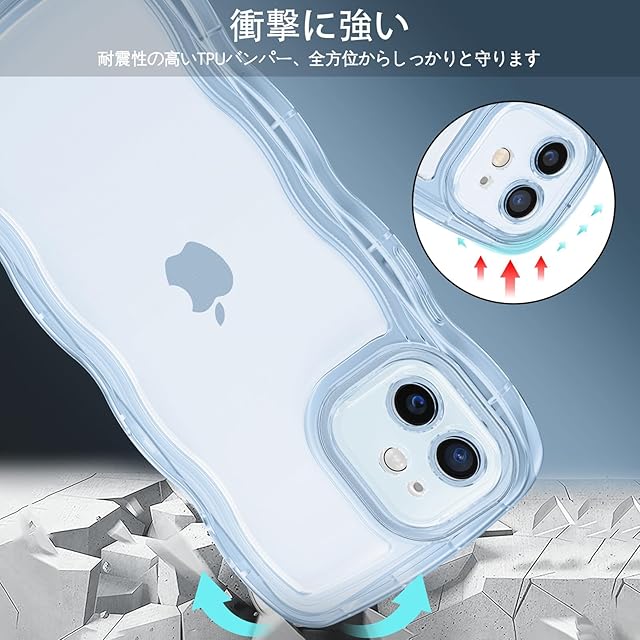 BENTOBEN iPhone 12 Mini ケース クリア TPU 韓国 可愛い ウェーブ ソフト 滑り止め 薄型 軽量 耐衝撃 おしゃれ スマホケース ストラップホール付き アイフォン12ミニ ケース ブルー