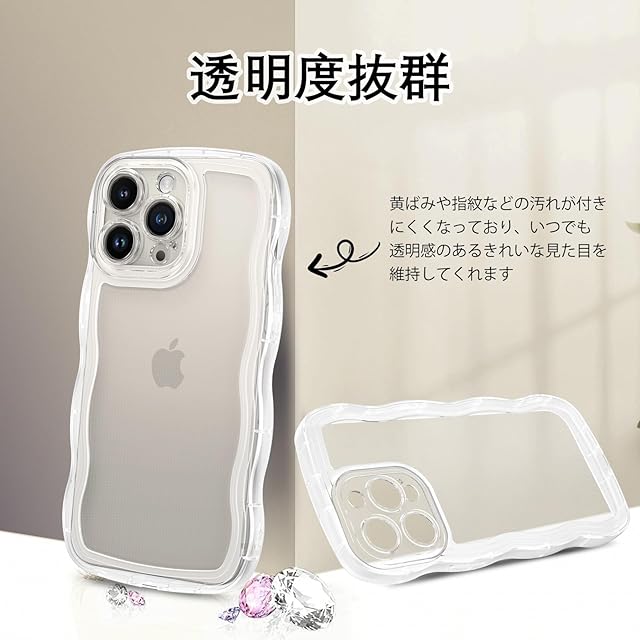 BENTOBEN iPhone 15 Pro Max ケース クリア TPU 韓国 可愛い ウェーブ ソフト 滑り止め 薄型 軽量 耐衝撃 おしゃれ スマホケース ストラップホール付き アイフォン15プロマックス ケース クリア