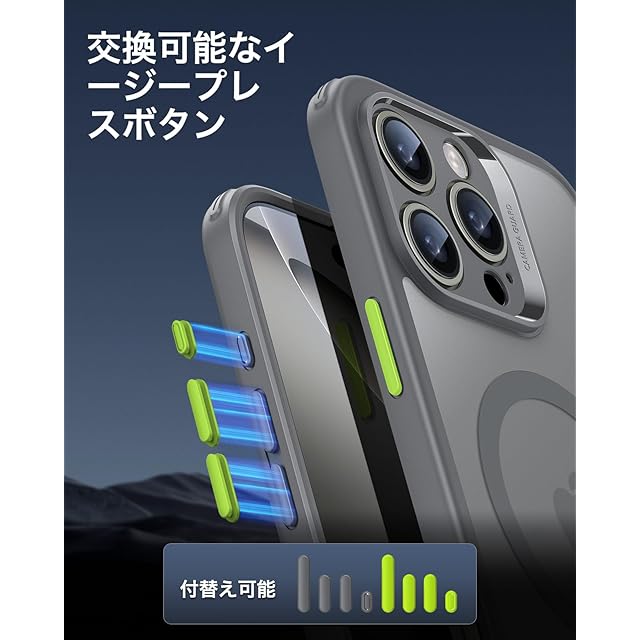 【付替え可能イージープレスボタン】:カラフルで付替え可能なイージープレスボタンにより、お好みのスタイルへカスタマイズできます。このいphone16promax ケースで、あなたのスタイルに合わせたカスタマイズが可能です