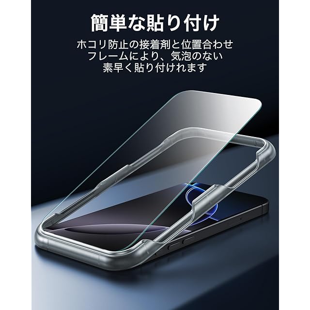 【互換性】iPhone 16 Pro 専用。【梱包品】 半透明マットケース×1、強化ガラス製スクリーン保護フィルム×1、付替え可能なイージープレスボタン×2セット、位置合わせフレーム×1。対応機種:いphone16pro ケース